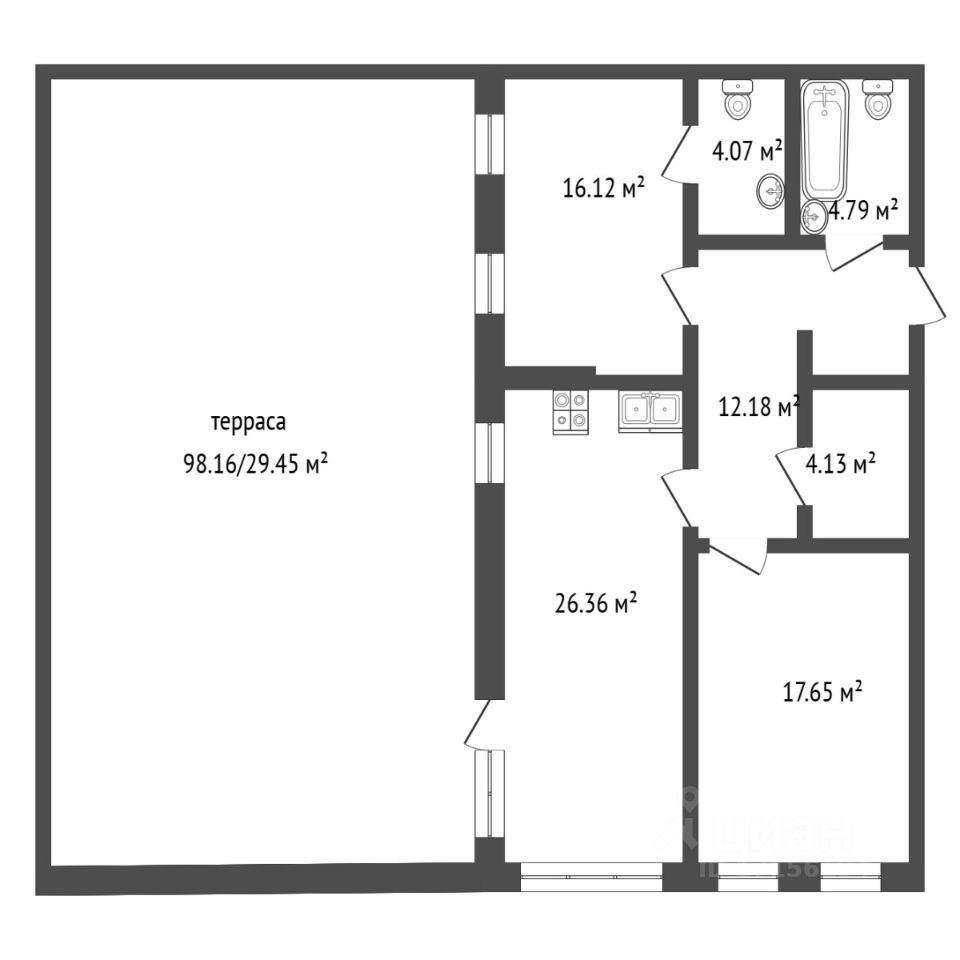 - Большая терраса даёт дополнительные варианты использования и повышает инвестиционную привлекательность.