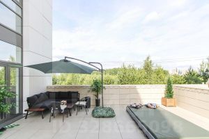 - Просторная личная терраса, пригодная для установки бассейна, шезлонгов, гриля, качелей или для организации зимнего сада — отличное место для отдыха и приёма гостей.