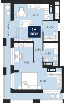 Однокомнатная квартира от застройщика с предчистовой отделкой в ЖК "Айвазовский" на 17 этаже. Общая площадь: 67 кв.м. Высота потолков 2.7 м.