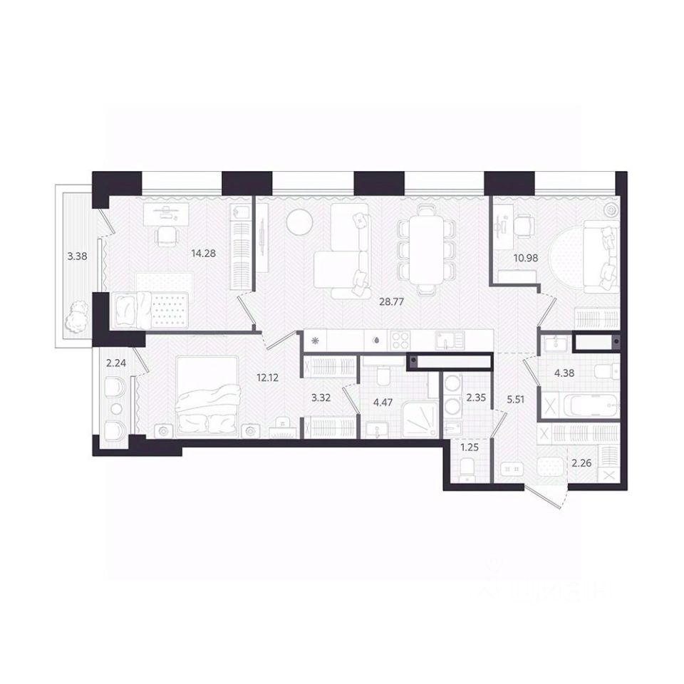 Продаётся 3-комнатная квартира в строящемся доме (ТЕМПЛИН), срок сдачи: II-кв. 2028, общей площадью 91.27 кв.м., на 4 этаже. Новый дом бизнес-класса расположится в районе Дома Печати на ул. Циолковского - в балансе между городской динамикой и комфортом уединения. Здесь всё под рукой, чтобы работать, встречаться и восстанавливаться, не теряя темпа.