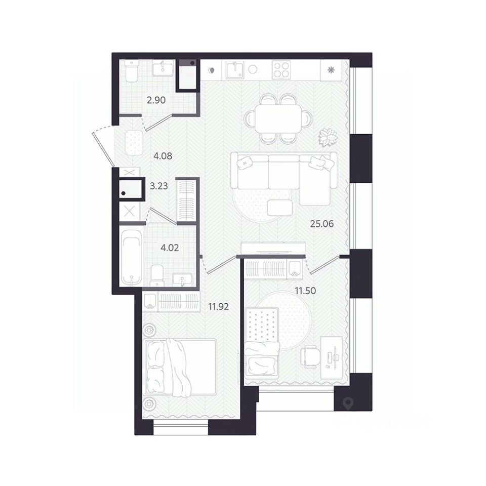 Архитектура 23-этажной доминанты подчёркивает ваш статус и уверенность в деталях. Средняя площадь квартиры в доме составляет 62м, что формирует сообщество людей ценящих пространство. А двор на стилобате обеспечит приватность, которая будет усилена сервисами включёнными в ваши повседневные задачи.