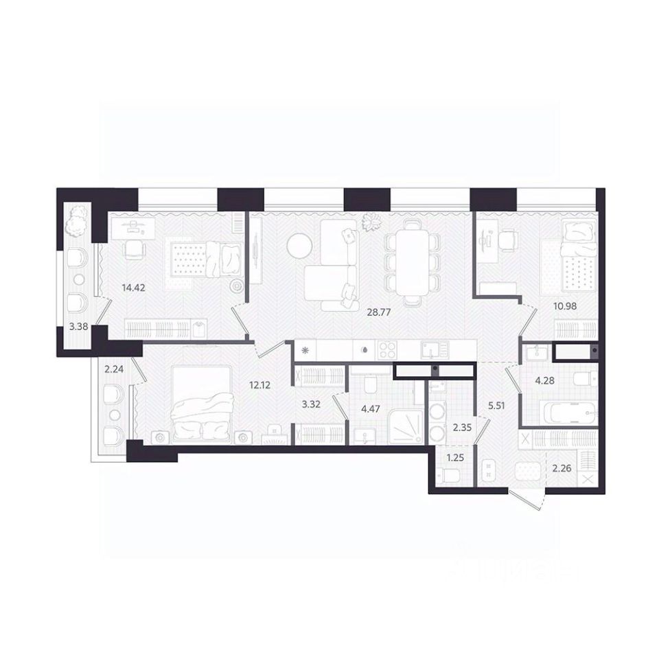 Продаётся 3-комнатная квартира в строящемся доме (ТЕМПЛИН), срок сдачи: II-кв. 2028, общей площадью 91.27 кв.м., на 6 этаже. Новый дом бизнес-класса расположится в районе Дома Печати на ул. Циолковского - в балансе между городской динамикой и комфортом уединения. Здесь всё под рукой, чтобы работать, встречаться и восстанавливаться, не теряя темпа.
