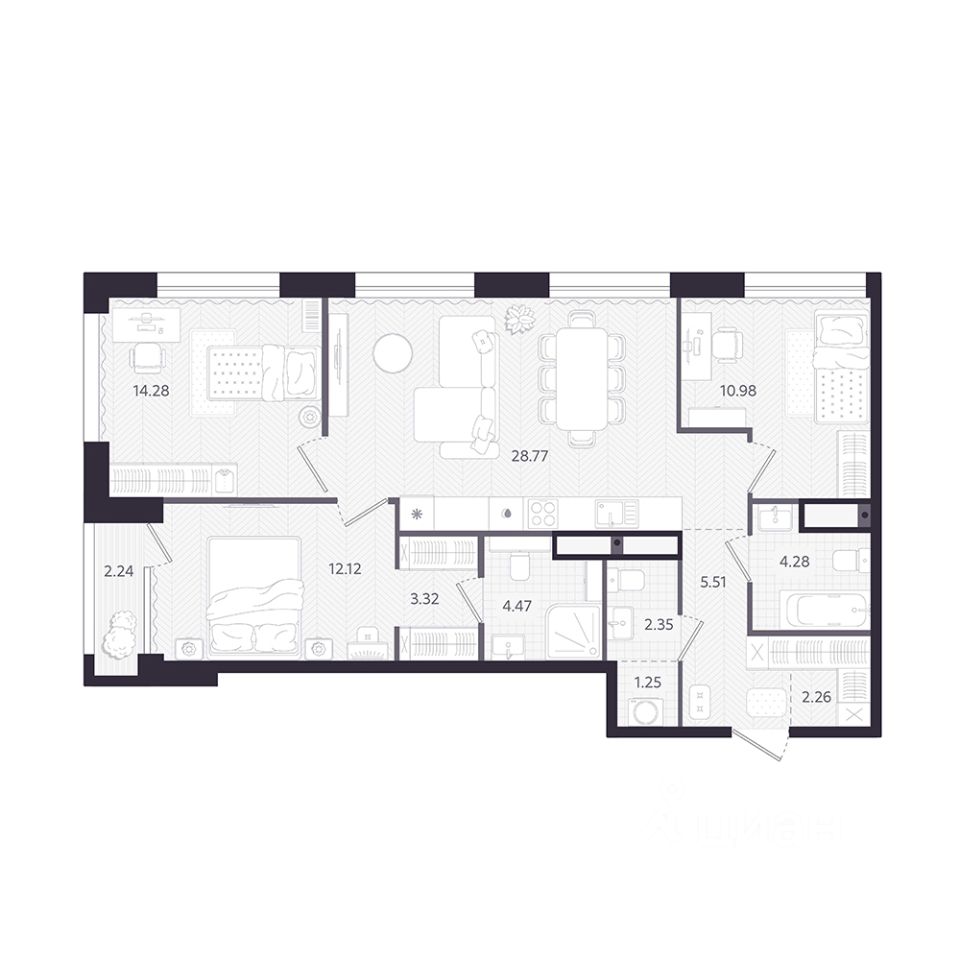 Продаётся 3-комнатная квартира в строящемся доме (ТЕМПЛИН), срок сдачи: II-кв. 2028, общей площадью 90.26 кв.м., на 9 этаже. Новый дом бизнес-класса расположится в районе Дома Печати на ул. Циолковского - в балансе между городской динамикой и комфортом уединения. Здесь всё под рукой, чтобы работать, встречаться и восстанавливаться, не теряя темпа.