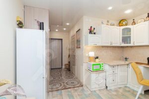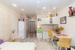 Светлая и тёплая студия на 13 этаже. Сделан ремонт: современные материалы, продуманное освещение.