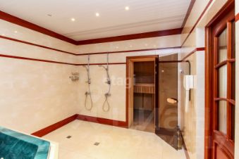 Ремонт: окна пластиковые с выходом на две стороны (юг-север), потолки натяжные + гипсокартон с точечным освещением, на стенах обои, на полу паркетная доска, пробка + кафель с подогревом. Установлены межкомнатные двери из натурального дерева. Сан.узлы оформлены качественным кафелем и санфаянсом (ванна, душевая кабина, раковина, унитаз, биде), шкафчиками и зеркалами, сантехникой и смесителями.