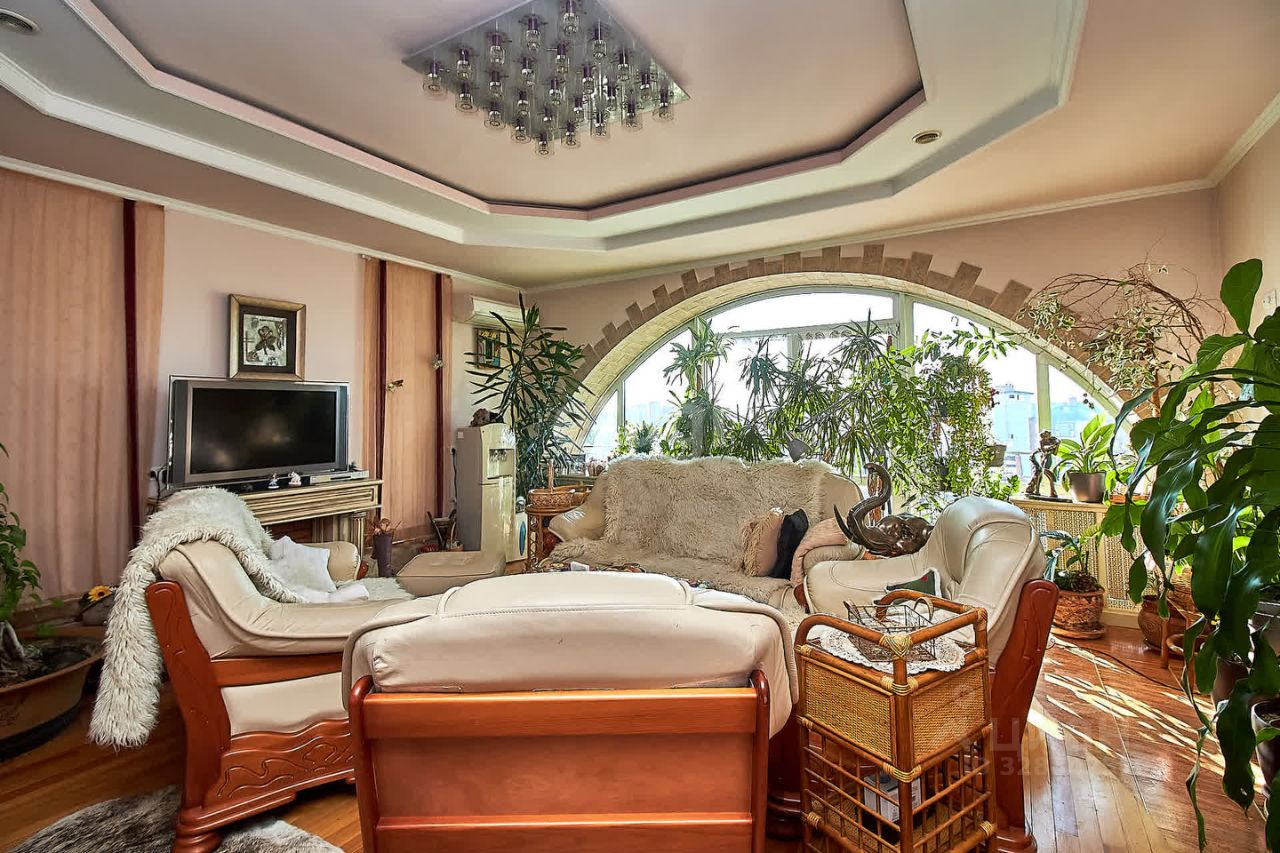 ЭКСКЛЮЗИВ!!!Очень интересная и шикарная квартира в самом центре города с закрытым двором, с полным видеонаблюдением и охраной. Квартира продается с подземным теплым паркингом(14,5 м.кв. входит в стоимость квартиры). Окна выходят во двор, что создает тишину хотя и центр города, одно окно выходит на улицу Челюскинцев. 2 отдельные лоджии. Пол из лиственницы с подогревом. Есть комната отдыха, спортзал со своим санузлом. 2 туалета. Есть зимний сад сочетающийся с кухней-гостиной. В квартире 3 кондиционера. Гардеробная, кладовка. так же есть в квартире. Есть баня-душевая и так же отдельно баня-сауна. Бильярдная, 2 каминных зала, кабинет, прачечная.