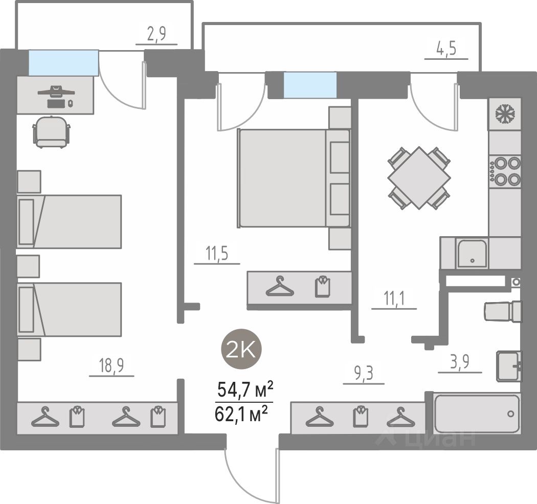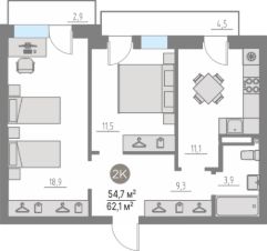 Общая площадь55 м²