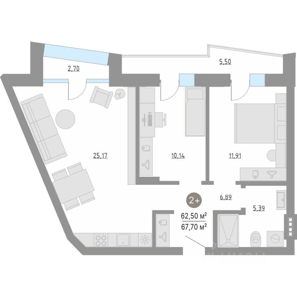 Общая площадь59,4 м²
