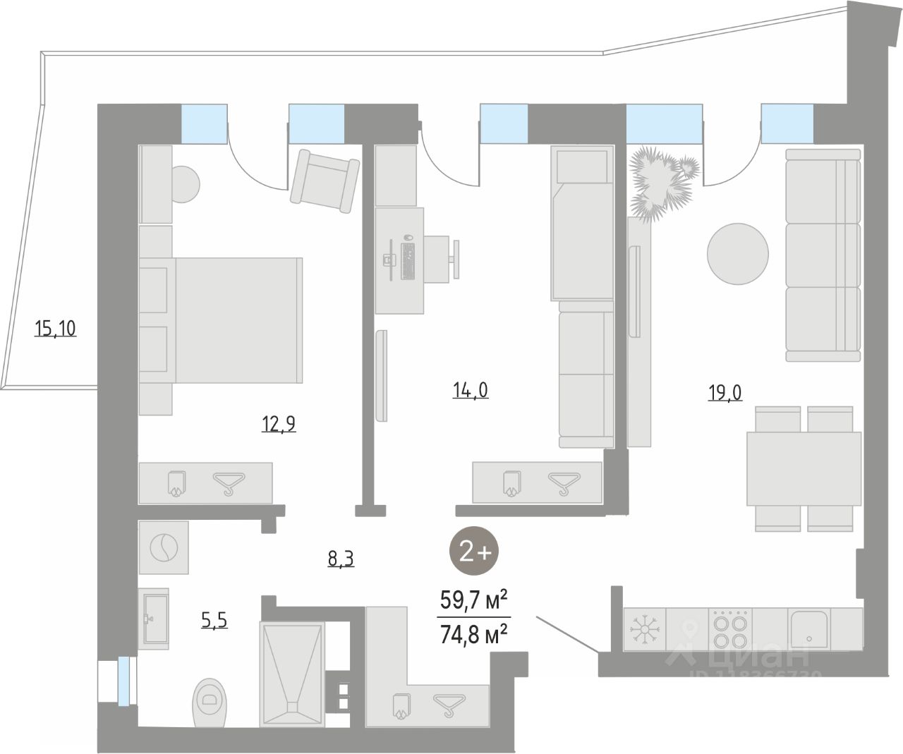 Общая площадь59,7 м²