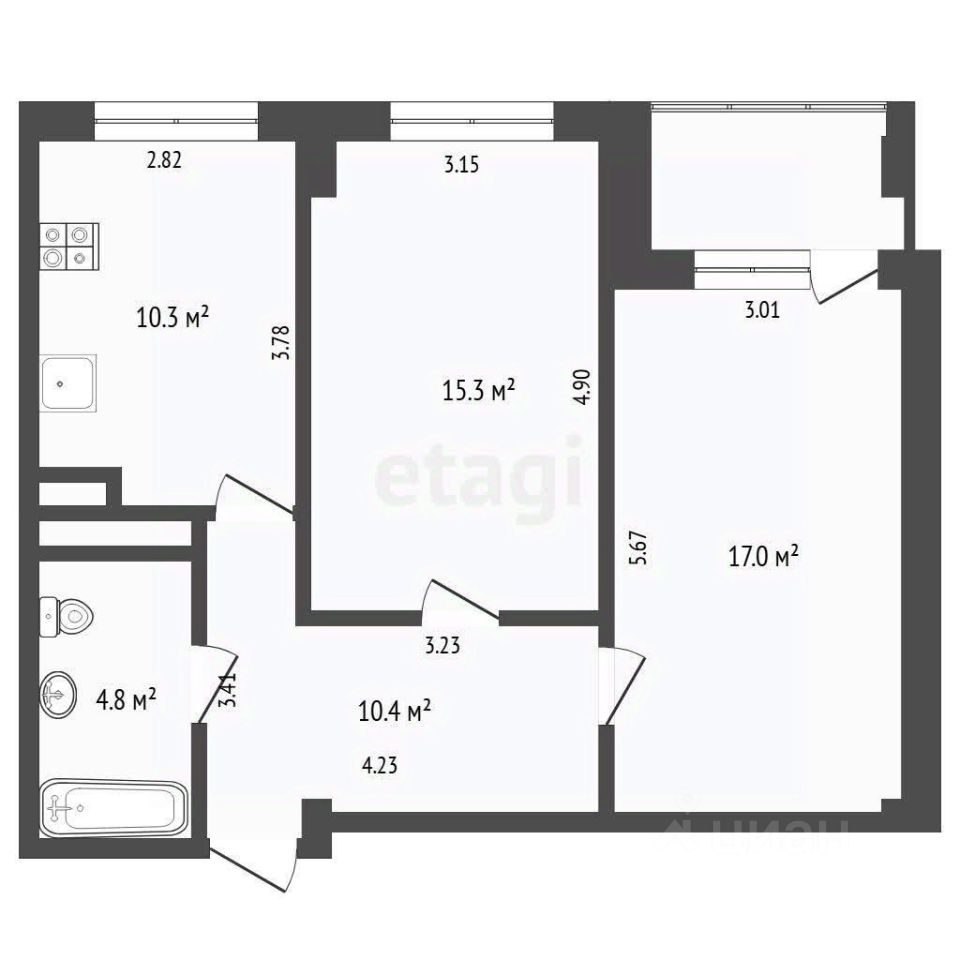 - может расти и меняться вместе с вашей семьей для семьи из 4 человек здесь можно очень комфортно и красиво разместить кухню-гостиную, 3 спальни, гардеробную и санузел (варианты в карусели)