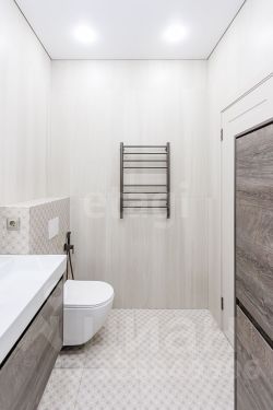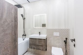 В квартире сделан ремонт из качественных строительных материалов. На полу кварцвинил, на стенах декоративная штукатурка, в сан узлах керамическая плитка, две инсталяции с гигиинеческими душами, две раковины, ванная. В сан узлах вытяжка и встроенная рейка для шторки в натяжном потолке. Установлен проточный водонагреватель, система "Нептун", от протечек, теплые полы, сплит-система. Потолки нятжные с современными световыми линиями, точечеными светильниками и люстрой.