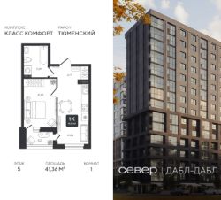 Продаётся квартира площадью 41.36 м2 в жилом комплексе "Дабл-Дабл". Квартира находится на 5 этаже, жилая площадь квартиры м2, площадь просторной кухни — м2. Среди особенностей планировки — изолированные комнаты с окнами на одну сторону, 1 совмещённый санузел.