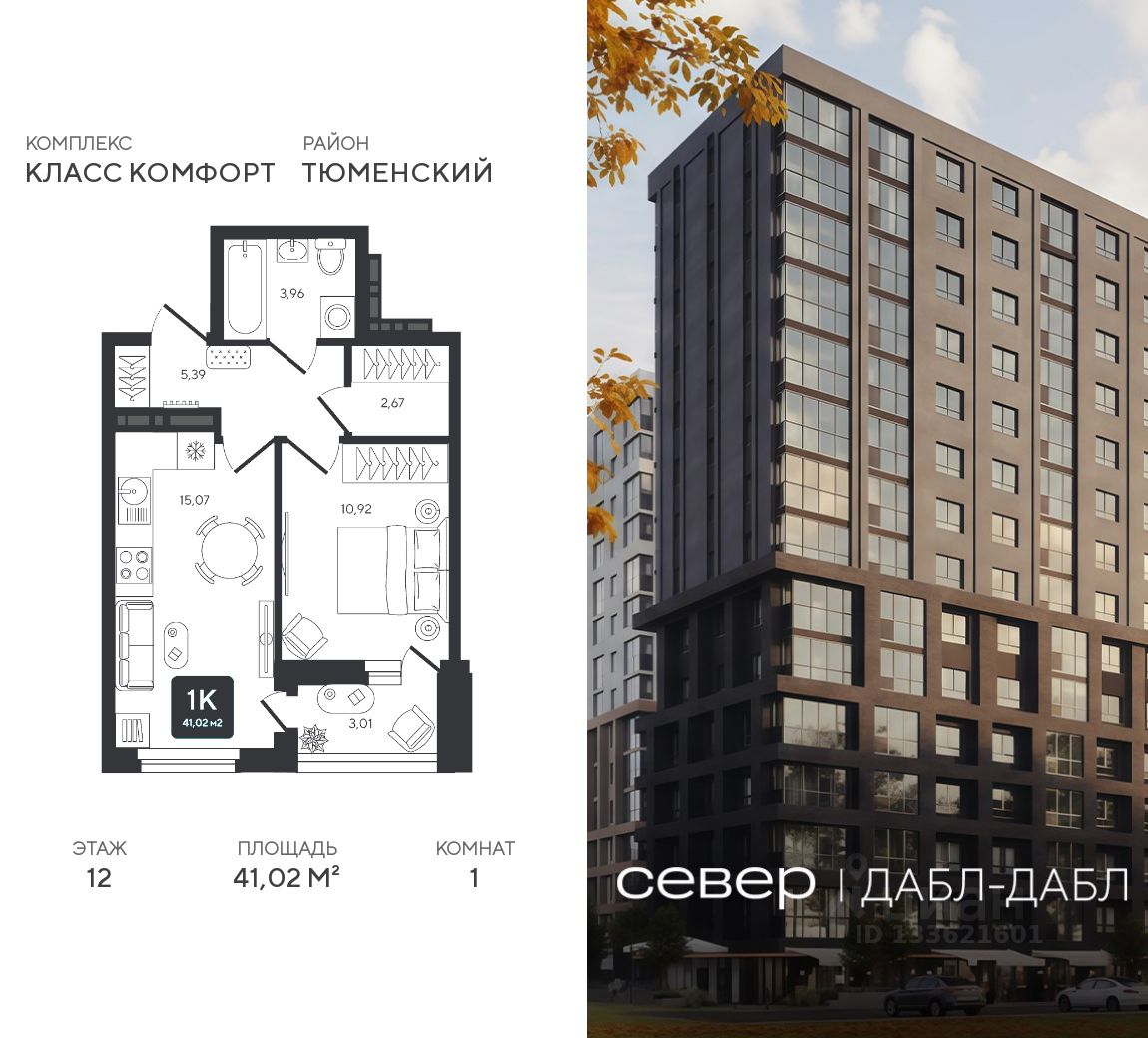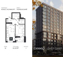 Продаётся квартира площадью 41.02 м2 в жилом комплексе "Дабл-Дабл". Квартира находится на 12 этаже, жилая площадь квартиры м2, площадь просторной кухни — м2. Среди особенностей планировки — изолированные комнаты с окнами на одну сторону, 1 совмещённый санузел.