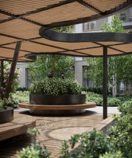 Пешеходные бульвары внутри района соединят между собой улицу ресторанов, детские и спортивные площадки, событийную площадь и летний кинотеатр.