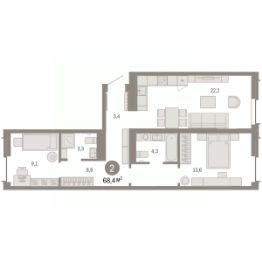 Продается двухкомнатная квартира с предчистовой отделкой в ЖК "Республики 205" на 6 этаже. Общая площадь: 68.43 кв.м. Высота потолков 2.7 м.