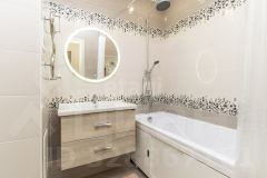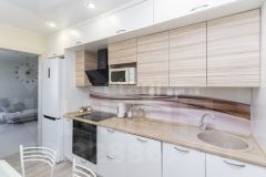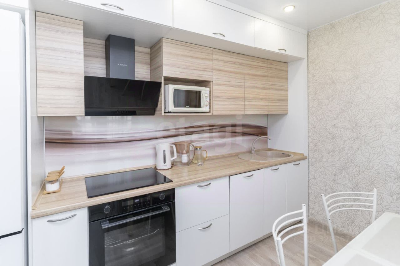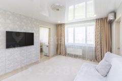 Выполнен современный ремонт, на полу в комнатах ламинат, в корридоре и санузле керамическая плитка. На балкон проведено электричество, установлен шкаф для хранения, на полу плитка. При продаже остаётся кухонный гарнитур, шкафы к корридоре и зале.
