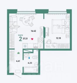 Общая площадь 37,2 кв.м.