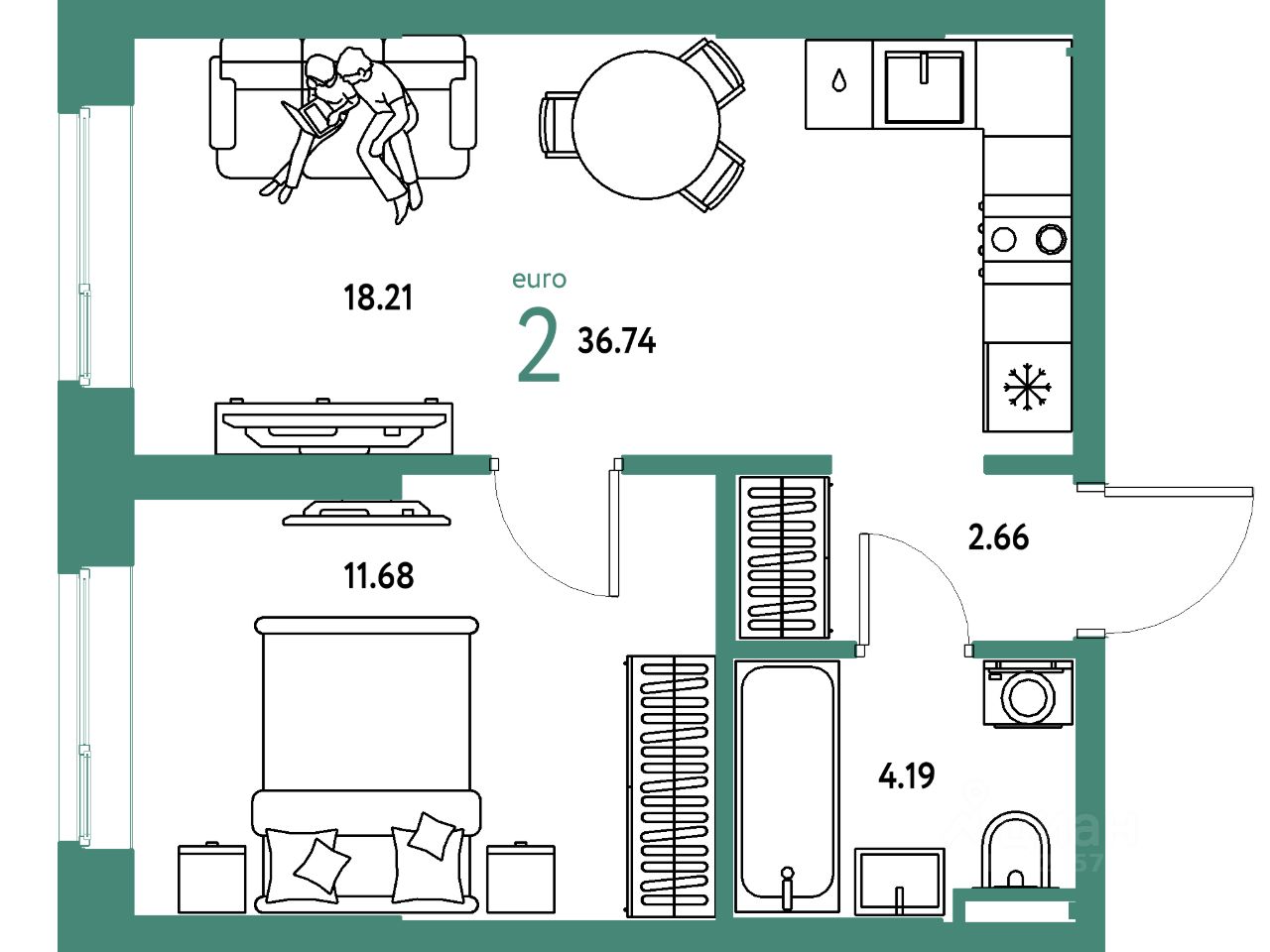 Продаётся 2-комнатная квартира в строящемся доме (Дом "Майорка" (1 этап, Краснооктябрьская, 10к1)), срок сдачи: IV-кв. 2028, общей площадью 36.74 кв.м., на 4 этаже. Новый жилой комплекс "Остров-сад" от Специализированного застройщика "Страна. Коммунистическая" расположен по адресу: г. Тюмень, по ул. Ярославская.