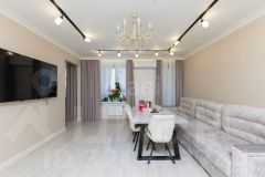 - Удобная планировка, отдельная гардеробная, просторные комнаты-здесь продумано все для комфортной жизни. Сердцем интерьера является кухня-гостиная, создающая пространство для общения крепкой и дружной семьи. Жилые комнаты легко адаптируются под разные сценарии жизни, в данной квартире может удобно расположиться, как большая семья, так и молодая пара, которая предпочитает работать из дома и только задумывается о детях.