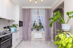 - Выполненный в современной классике интерьер простой и изящный, теплая цветовая гамма положительно влияет на эмоциональное состояние человека, обилие текстиля успокаивает и настраивает на гармоничный лад. Красота и сдержанность- основные характеристики данного интерьера. Универсальный, продуманный до мелочей дизайн не только позволит комфортно жить в данной квартире, но и сохранит свою актуальность спустя многие годы.