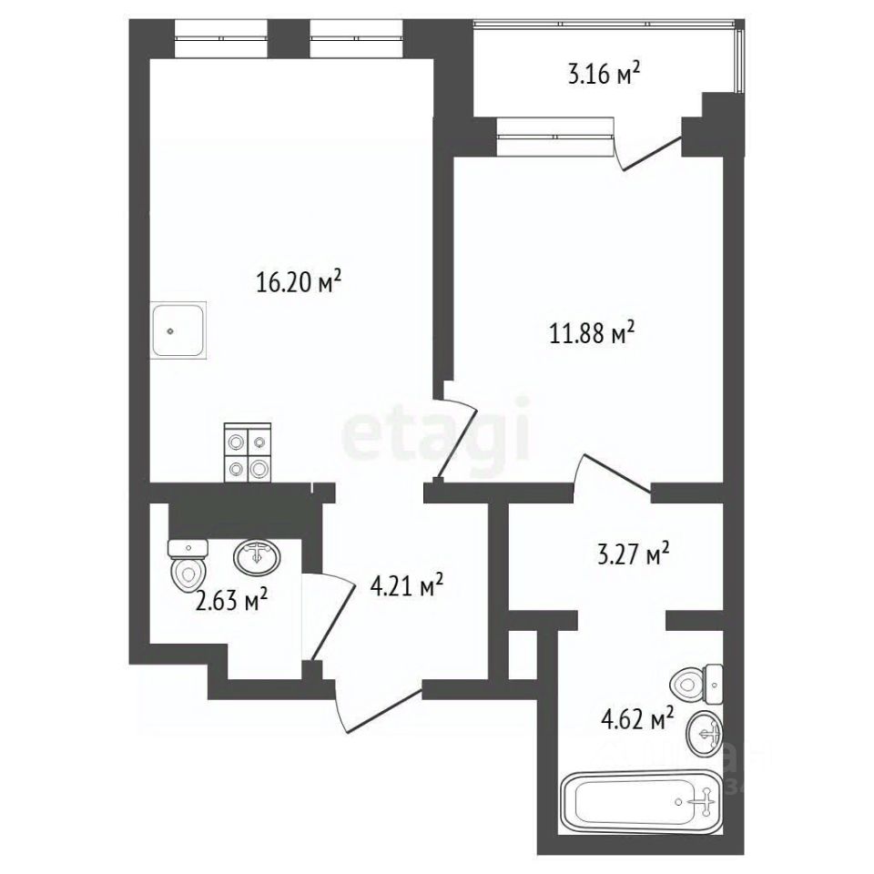 Квартира формата 1+ расположена на комфортном 4 этаже: