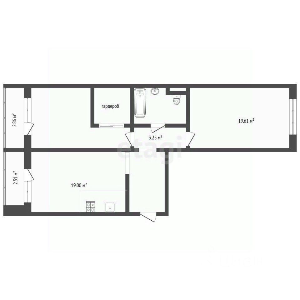 Квартира отличается продуманной современной планировкой: изолированные комнаты, просторная кухня-гостиная и две лоджии. Дополнительным преимуществом является наличие большой гардеробной, что решает вопрос хранения.