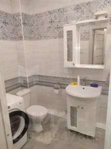 Совмещённый санузел: стильная плитка, ванная и стиральная машина.
