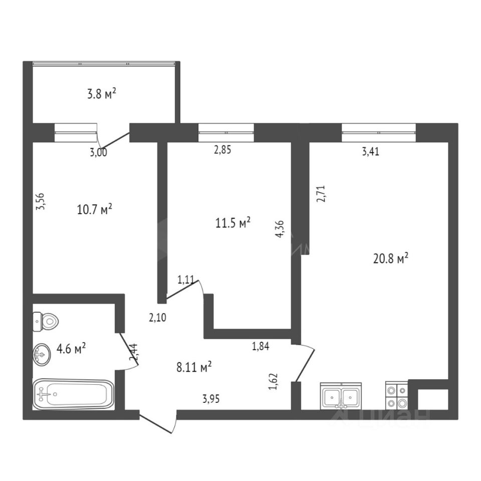 Общая площадь: 56.1 кв.м.