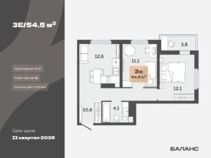 Первоначальный взнос 20% или 1 803 345 руб Евротрехкомнатная 52,6 м²