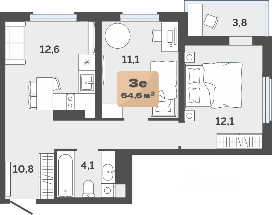 Квартира в евроформате с кухней-гостиной и второй спальней. В одной из комнат выход на лоджию с угловым панорамным остеклением. Он с окнами в пол — будет больше света. В холле ниша под шкаф и установку обувницы.