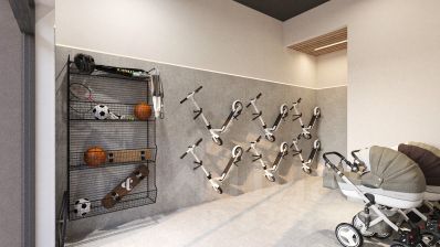 Стильные лобби в предусмотрены колясочные для семей с маленькими детьми.