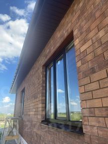 Окна: пластик с ламинарией коричневой. Тройное остекление.