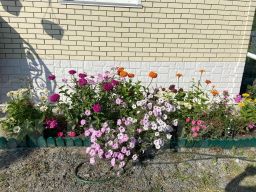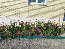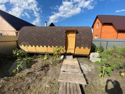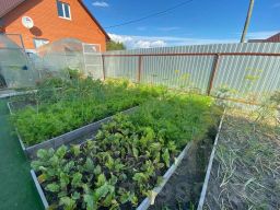 На участке огород, деревья (вишня, слива, груша, яблони, крыжовник, малина, смородина, клубника, абрикос, жимолость, сирень) 2 теплицы, многолетние цветы (пионы, розы, гортензия и др.). Новая баня-бочка (6х2,5).