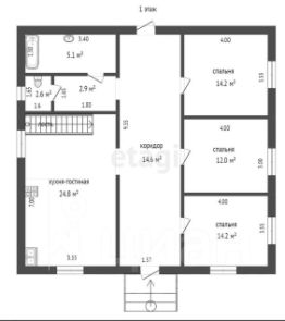 На первом этаже просторная кухня-гостиная, 3 спальни, котельная с сан/узлом, ванная комната (теплый пол).