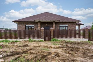Фундамент - монолитная плита 300 мм. Несущая стена - керамзитоблок 290 мм с утеплением 100 мм. Облицовка - керамический кирпич Баварская кладка 120 мм (одинарный). Кровля - мягкая черепица, деревянная стропильная система. Стены оштукатурены под маяк и ошпаклеваны. На полу полусухая стяжка. Отопление - тёплый водяной пол + радиаторы. 2 котла газовый и резервный электрокотел. Бойлер. Скважина, септик. Электроразводка по всему дому. Окна имеют пяти-камерный профиль. Дверь уличная, коттеджная с терморазрывом. Утеплённая отмостка.