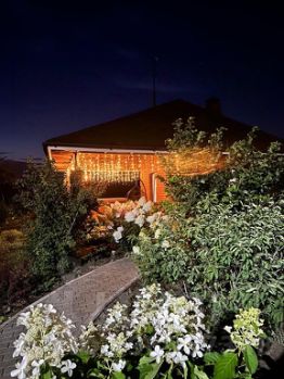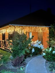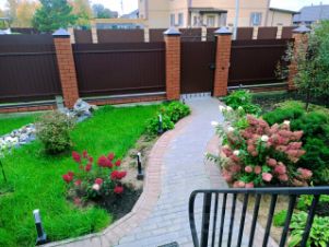 Ландшафтный дизайн внутри сада и на подъезде к дому, уличное освещение, плодоносящие кусты и деревья, отдельный гостевой дом с террасой для отдыха, костровая зона. Забор на ленточном фундаменте по всему периметру участка.