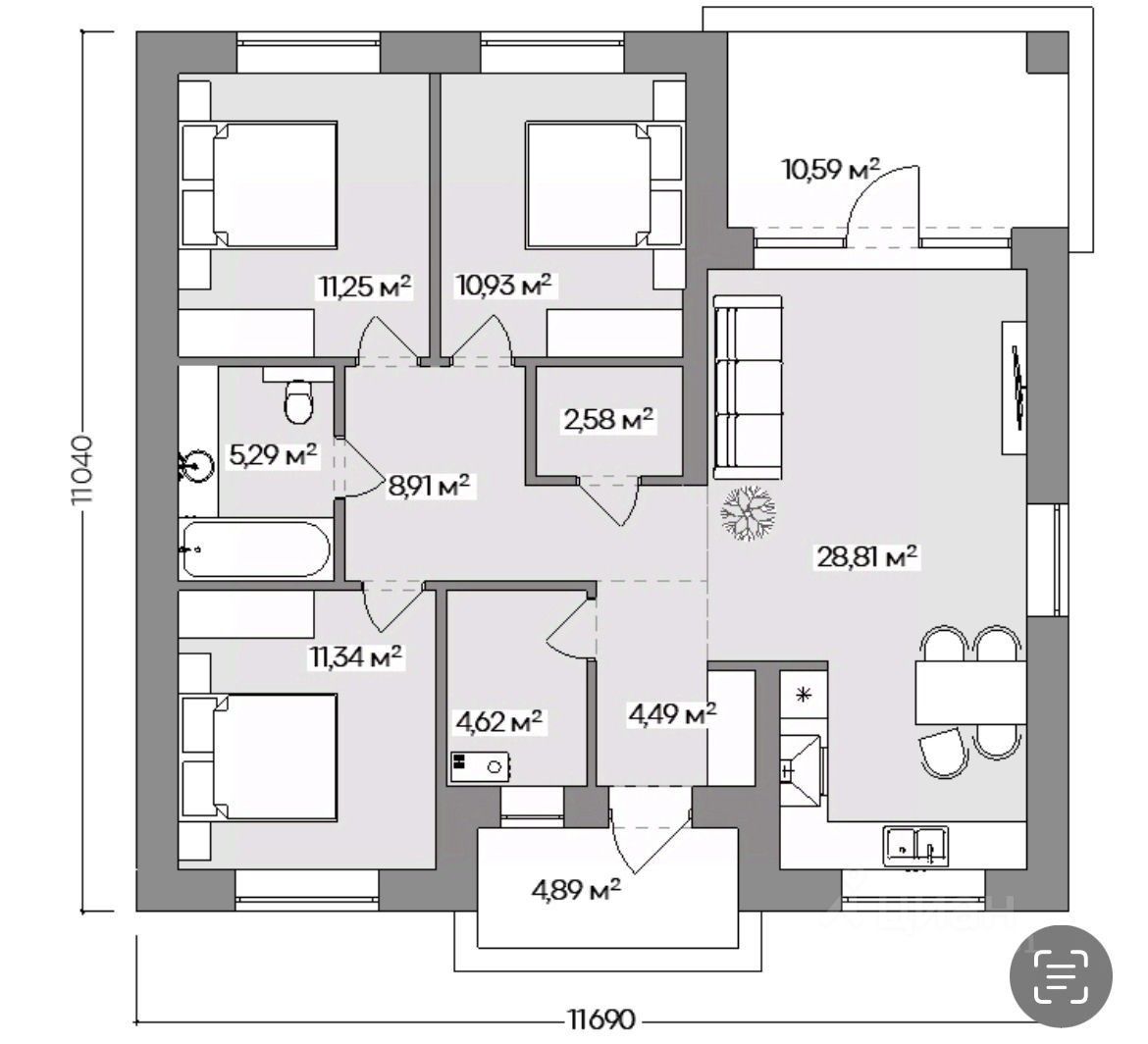 Продается готовый дом 105 м2 с тремя спальными комнатами и просторной кухней гостиной. Садик, школа и магазины в шаговой доступности! Фасадная часть участка 30 метров, есть место для возведения гаража, бани и т.д. Возможна продажа через льготную ипотеку по сниженной ставке.