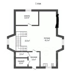 1 этаж: кухня-столовая-гостинная 41кв.м