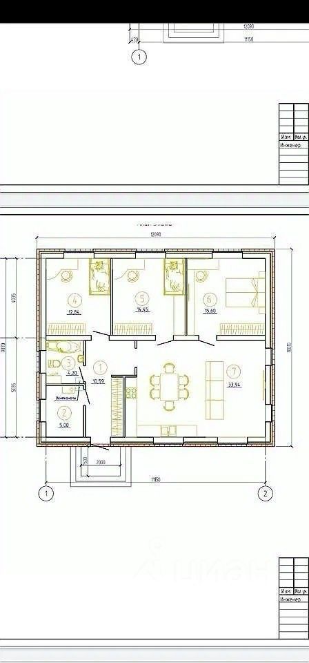 Комфортная, эргономичная планировка- максимум полезной площади, 97м2: просторная кухня-гостиная 34 м2, три отдельные спальни, сан. узел, бойлерная, прихожая.