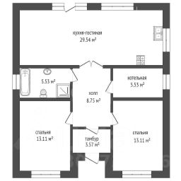 2 просторные спальни, большая кухня-гостиная, сан-узел, котельную, входную группу.