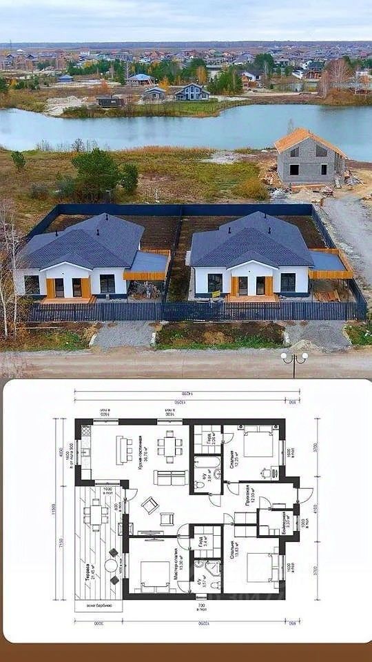 Планировка: 3 просторные спальные комнаты, 2 из которых с собственными гардеробными и санузлами, просторная Г-образная кухня-гостиная 37 кв.м. с выходом на собственный террасу, отдельно выделенная котельная.