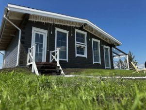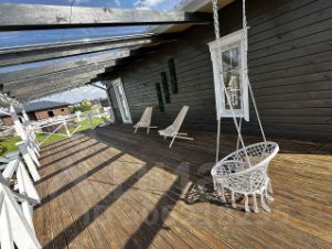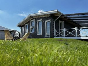 Особенности дома: * Уникальный дизайн в стиле шале * Просторная планировка с панорамными окнами * Высокие потолки и много света * Качественные материалы и отделка * Современная кухня-гостиная с выходом на террасу * Три уютные спальни * Два санузла с дизайнерской сантехникой * Печь-камин для создания особой атмосферы * Планировка - 3 комнаты, кухня-гостиная , гардероб, санузел, прихожая.