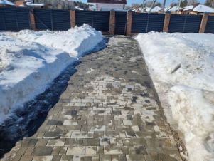 Отмостка и цоколь дома утеплены пеноплексом 50мм, с отсекающей гидроизоляцией, смонтированы бордюры, отмостка выполнена из щебня мелкой фракции.