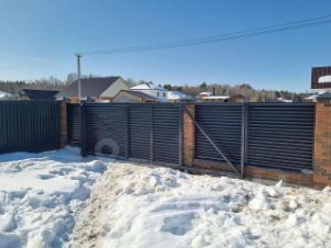 Забор сделан из евро-жалюзи, также установлены откатные ворота.