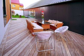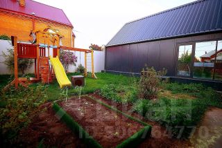 Крыша дома эксплуатируемая, что позволяет обустроить на ней террасу. Также есть терраса возле дома, выход на которую осуществляется из кухни. Установлена хорошая детская площадка.