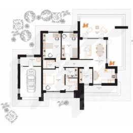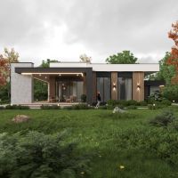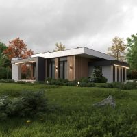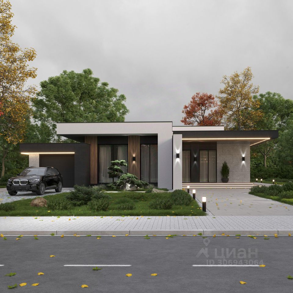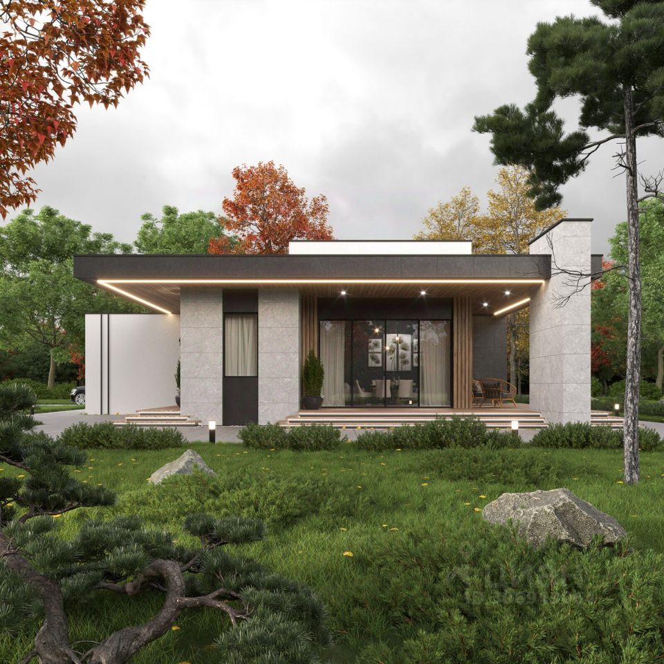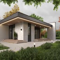 Одноэтажная вилла в стиле Хай Тек с террасой и теплым гаражом.