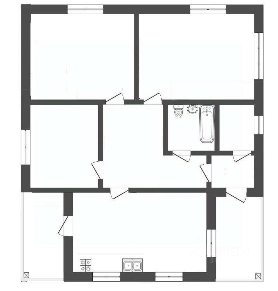 Удобная планировка включает в себя просторную кухню-гостиную и три отдельные спальни, предоставляя достаточно места для комфортного проживания всей семьи.