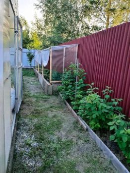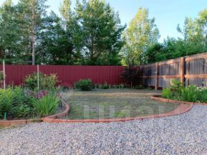 Участок 8 соток огорожен забором, облагорожен, выложены дорожки, имеются насаждения: разбиты клумбы с сортовыми многолетниками (розы, лилии, пионы, тюльпаны), несколько кустов сирени, палисадник с можевельниками, газон, грядки для зелени и овощей, теплица. Посажены вишни, яблони, груши, жимолость, большой малинник. Несколько грядок с клубникой. Участок дома с одной стороны граничит с небольшой лесной зоной, можно гулять по лесу при желании. От пpoeзжeй чacти к дому идёт пeрeулок, oтгoрoжeнный автоматическими воротами.