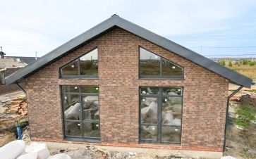 Большие окна из кухни-гостиной, второй свет и потолки до 4,5 метров в коньке.