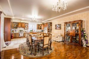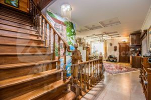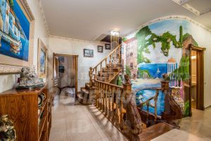 свой индивидуальный кондиционер. Ремонт произведен в оригинальном стиле. Лестница из дуба по индивидуальному заказу. В столовой дубовый паркет. Где выложен керамогранит - теплый пол. Межкомнатные двери из массива дуба. При продаже остается все: итальянская мебель из красного дерева. Мягкая мебель из белой кожи. Спальные гарнитуры. Бытовая техника. На участке имеется крытый бассейн со своей системой очистки. Баня в русском стиле с комнатой отдыха и террасой. Гараж капитальный, из красного кирпича на две машины. Капитальный дом в двух уровнях - можно использовать для обслуживающего персонала или как гостевой дом. Участок оформлен с любовью - имеется розарий, ландшафтный дизайн из вечнозеленый хвойных пород, плодоносящий сад, кустарниковая зона. Все дорожки выложены из плитняка. Забор, по периметру участка, из красного кирпича. Полноценные въезды на участок с двух противоположных сторон. Имеется так же прилегающая территория в районе 12 соток, также заботливо оформленная и асфальтированная. Особое предложение - такой проект дома подойдет под любое коммерческое использование - гостиницу, офис....